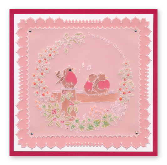 Linda's Robins & Red Cardinal Wreath Duet A5 Square Groovi Plate Set