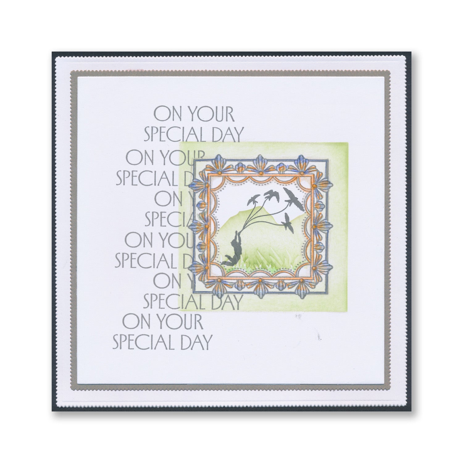 This bundle contains one A5 square stamp set and one 7" x 7" stencil: