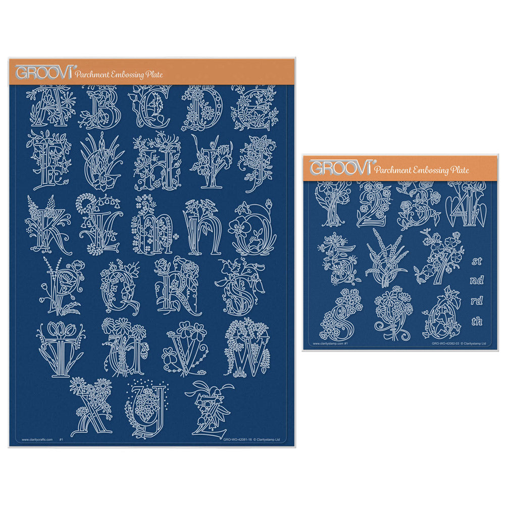 Barbara's Bijou Floral Alphabet & Numbers A4 & A5 Square Groovi Plate Duo