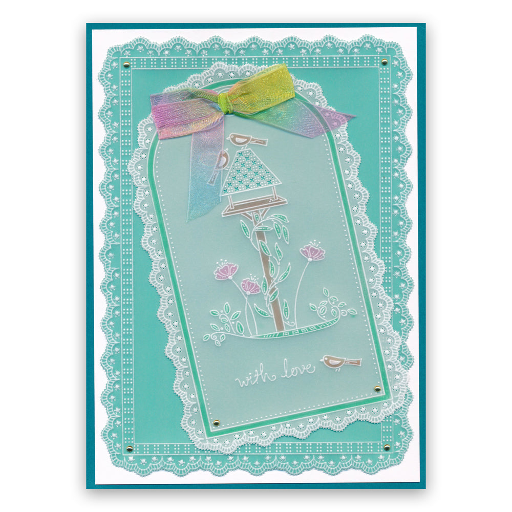 Intricate and clever designs have been laser etched with precision into top quality acrylic plates, thereby allowing you to get in the groove with a specifically made-to-measure embossing tool, and effortlessly follow the design path through parchment.