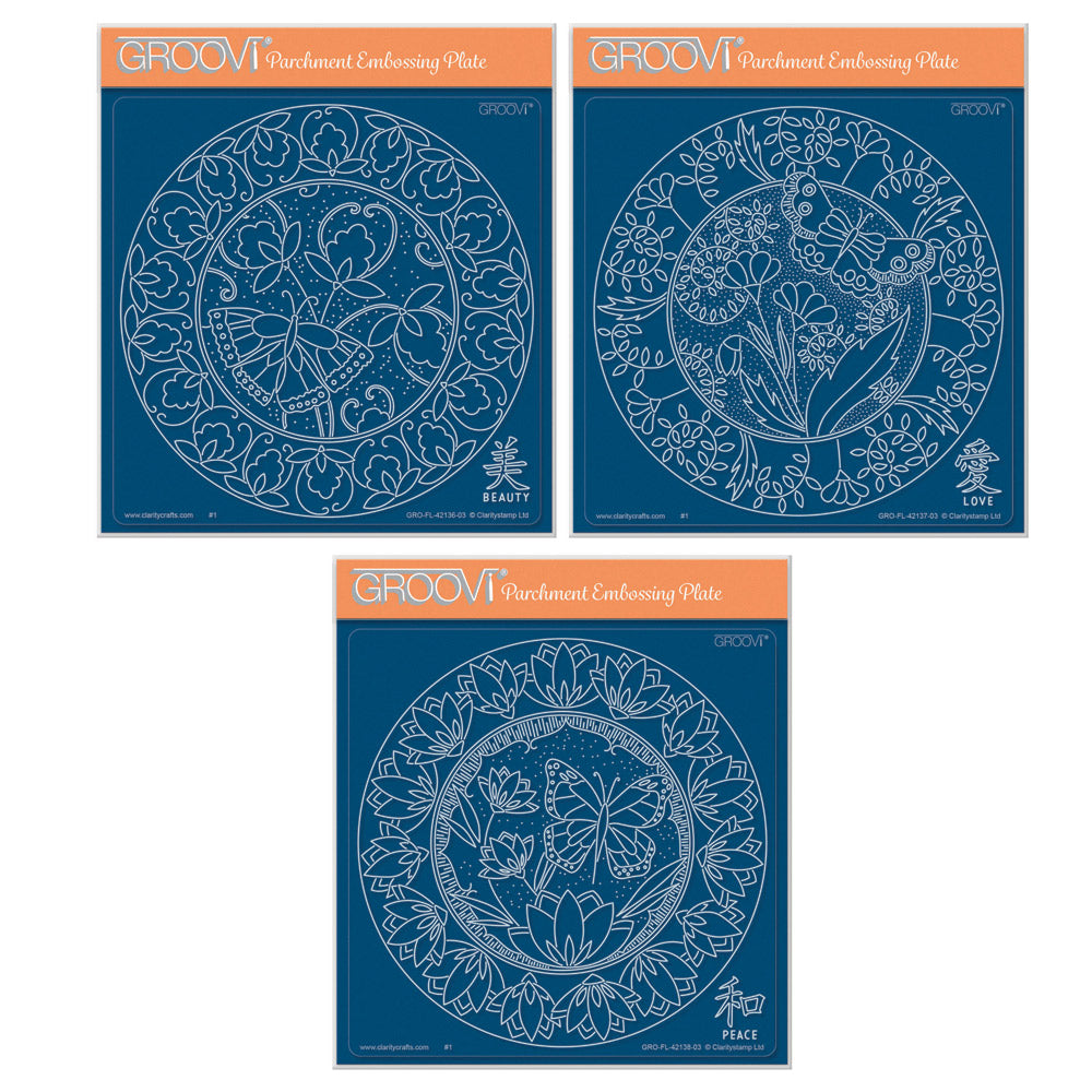 Barbara's SHAC Japanese Flowers & Butterflies A5 Square Groovi Plate Collection