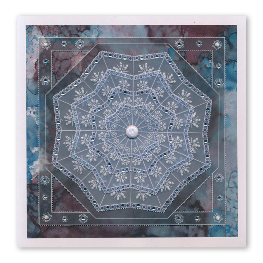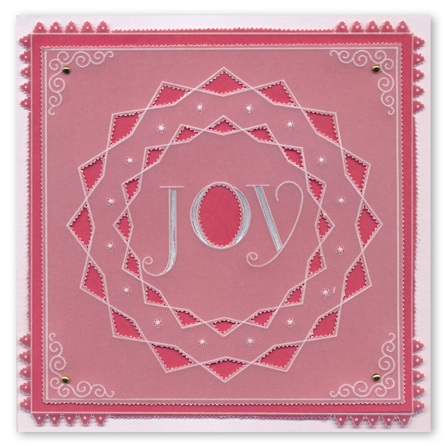 Intricate and clever designs have been laser etched with precision into top quality acrylic plates, thereby allowing you to get in the groove with a specifically made-to-measure embossing tool, and effortlessly follow the design path through parchment.