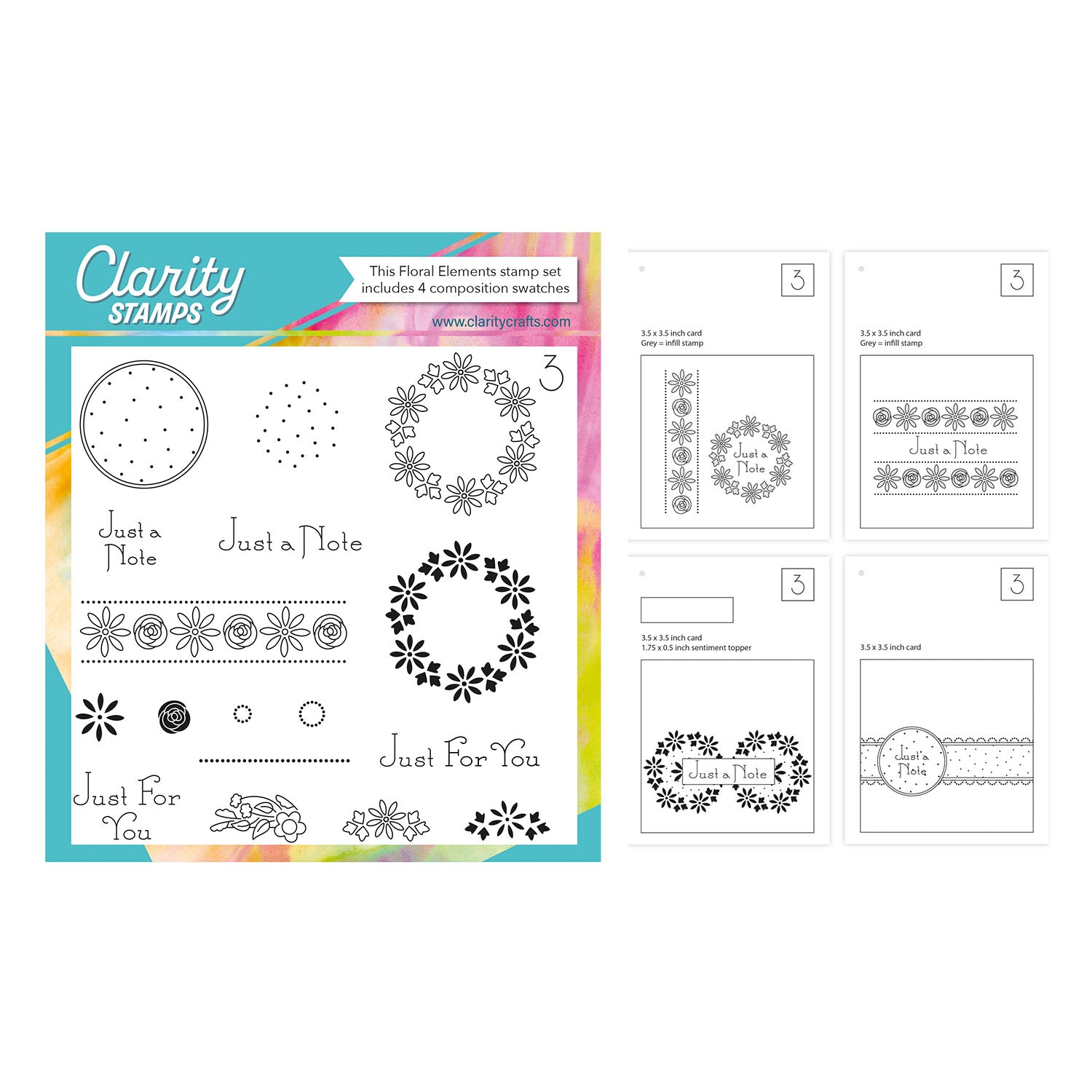 Floral Elements Set 3 - A5 Square Stamp Set with 4x A6 Composition Swatches