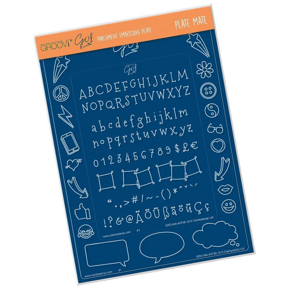 This 2-part Groovi Plate Mate for A6 Plates comprises both a general A6 Groovi Plate frame, to hold all your other A6 plates in place while you work, and an A6 Groovi Go! Alphabet Groovi Plate.