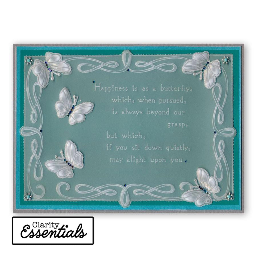These intricate and clever designs have been laser etched with precision into top quality acrylic plates, thereby allowing you to get in the groove with a specifically made-to-measure embossing tool, and effortlessly follow the design path through parchment. The end result is quick, crisp and clean.
