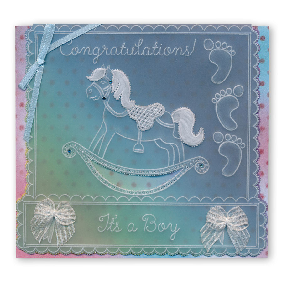 Intricate and clever designs have been laser etched with precision into top quality acrylic plates, thereby allowing you to get in the groove with a specifically made-to-measure embossing tool, and effortlessly follow the design path through parchment.