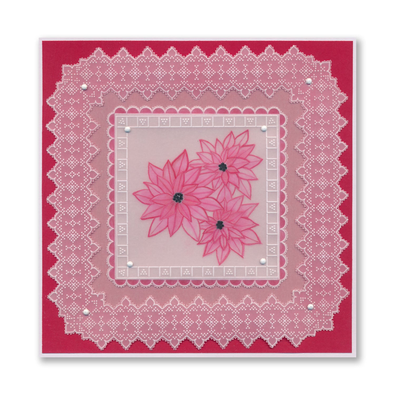 Intricate and clever designs have been laser etched with precision into top quality acrylic plates, thereby allowing you to get in the groove with a specifically made-to-measure embossing tool, and effortlessly follow the design path through parchment.