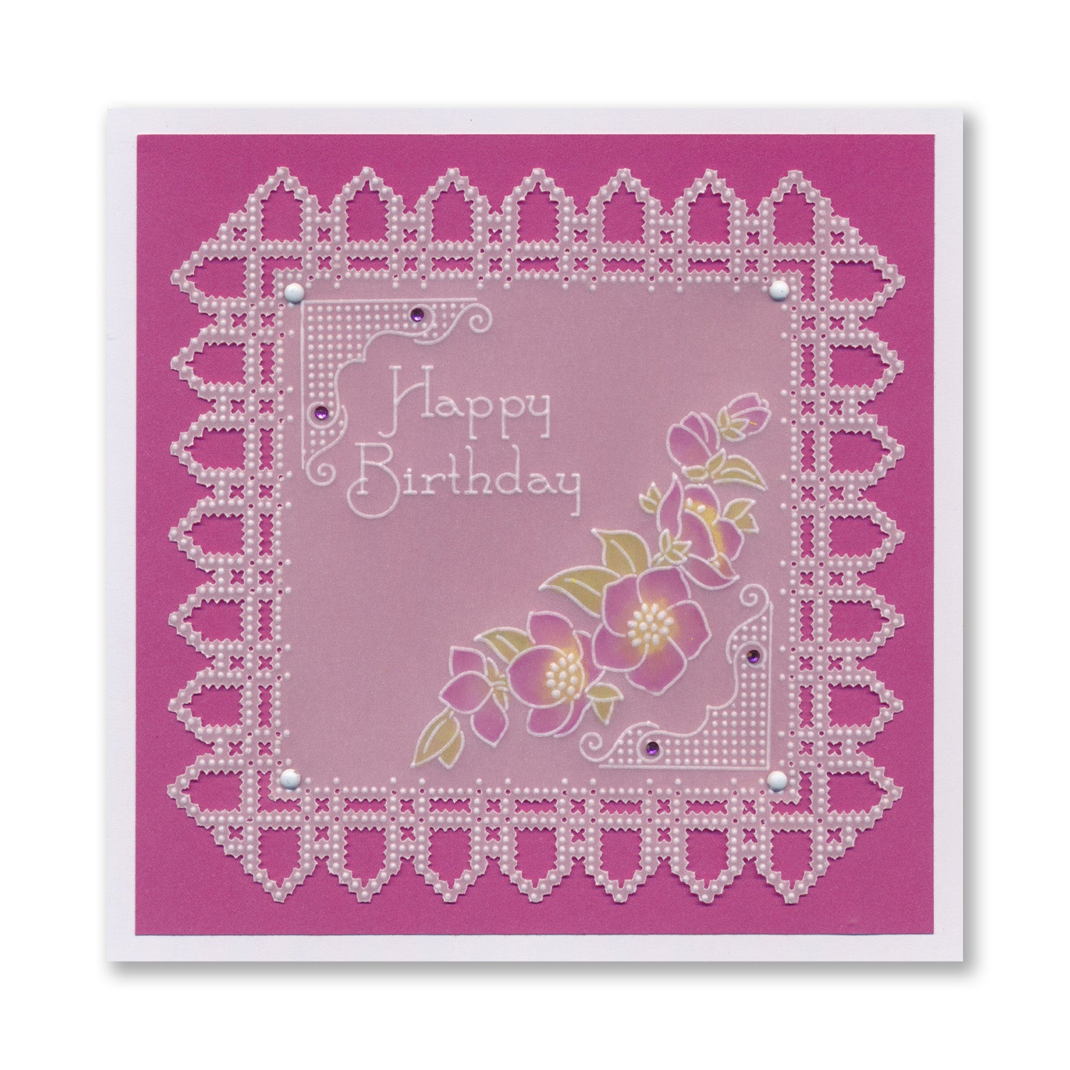 Intricate and clever designs have been laser etched with precision into top quality acrylic plates, thereby allowing you to get in the groove with a specifically made-to-measure embossing tool, and effortlessly follow the design path through parchment.