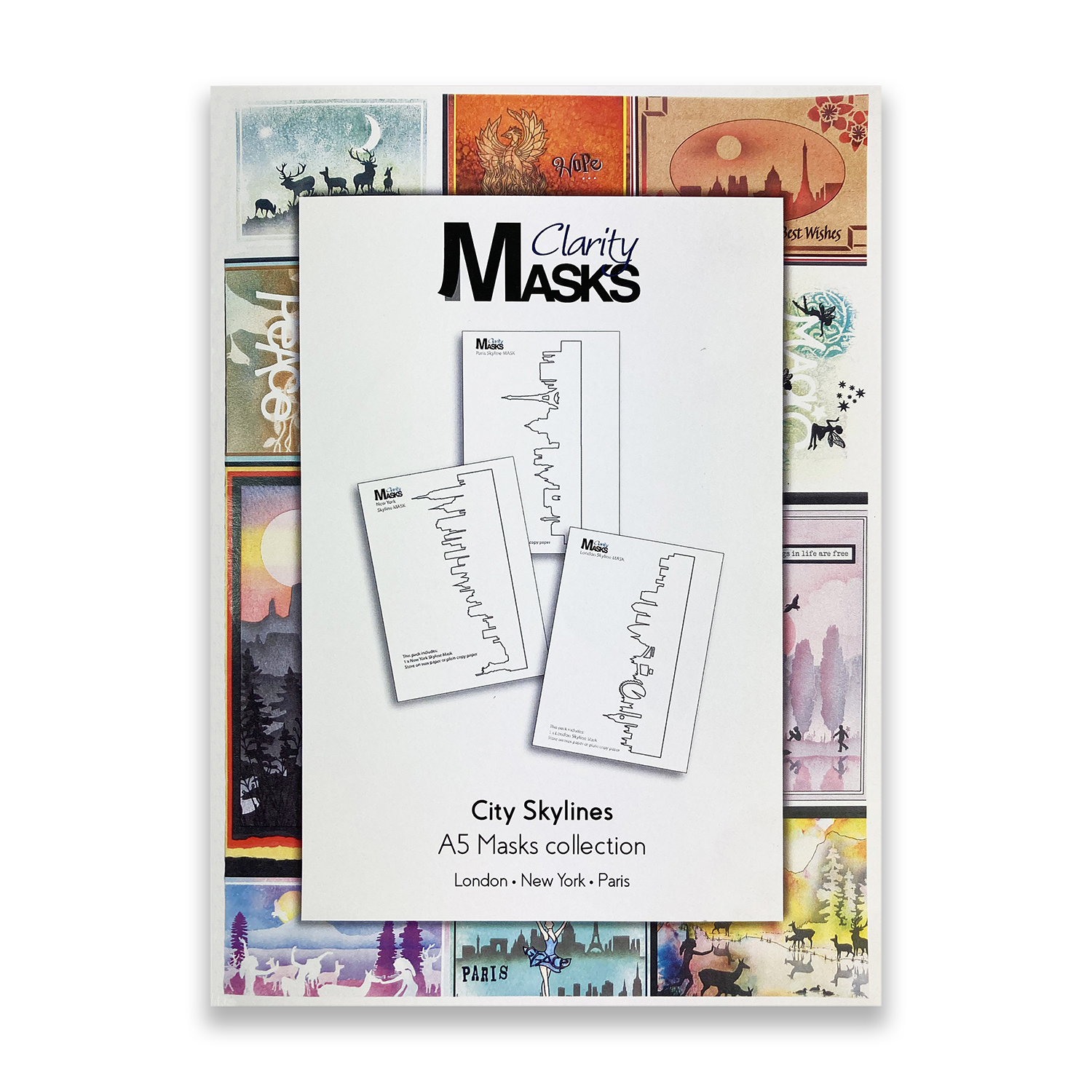 London, Paris & New York Skylines A5 Mask Set