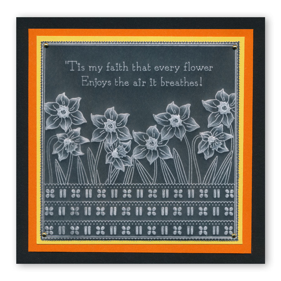 Intricate and clever designs have been laser etched with precision into top quality acrylic plates, thereby allowing you to get in the groove with a specifically made-to-measure embossing tool, and effortlessly follow the design path through parchment.