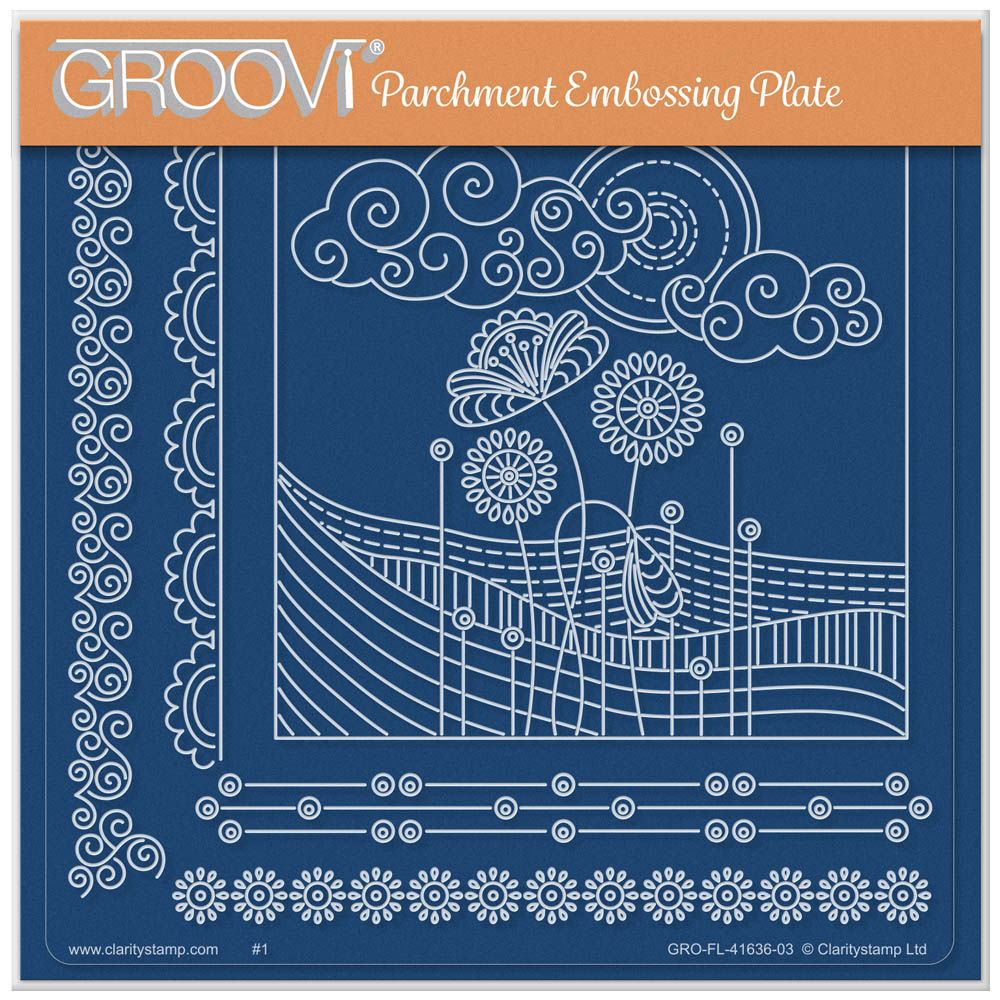 Tina's Fields & Flowers Doodle Landscape A5 Square Groovi Plate