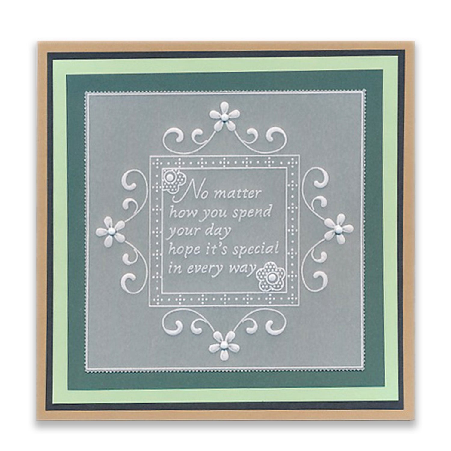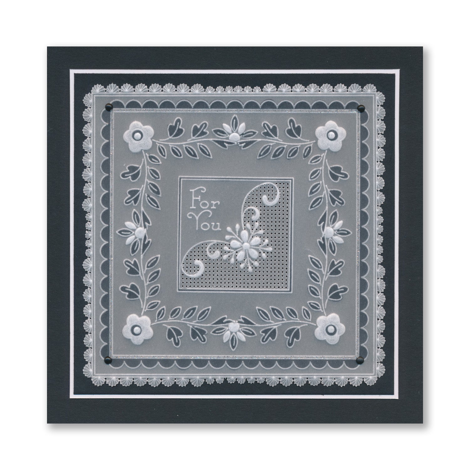 Intricate and clever designs have been laser etched with precision into top quality acrylic plates, thereby allowing you to get in the groove with a specifically made-to-measure embossing tool, and effortlessly follow the design path through parchment.
