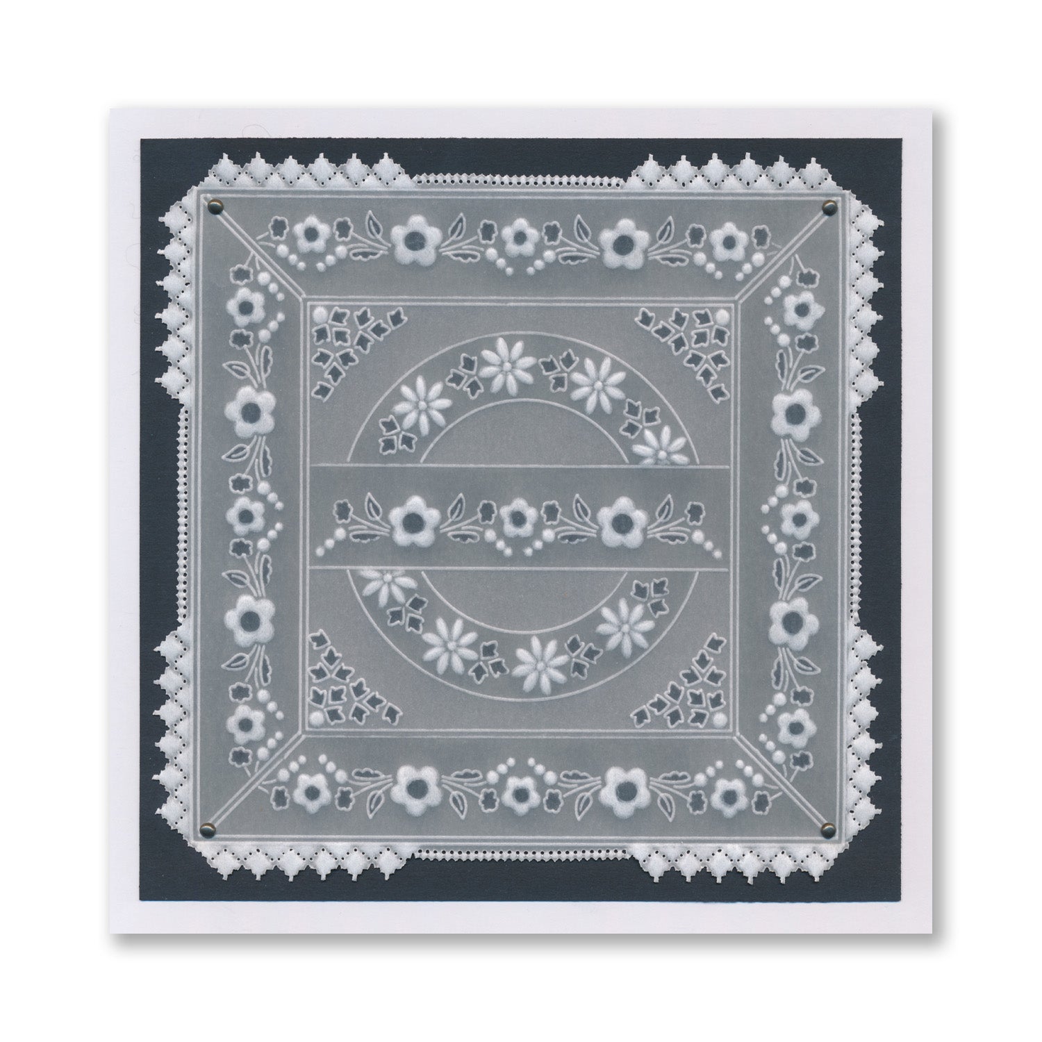 Intricate and clever designs have been laser etched with precision into top quality acrylic plates, thereby allowing you to get in the groove with a specifically made-to-measure embossing tool, and effortlessly follow the design path through parchment.